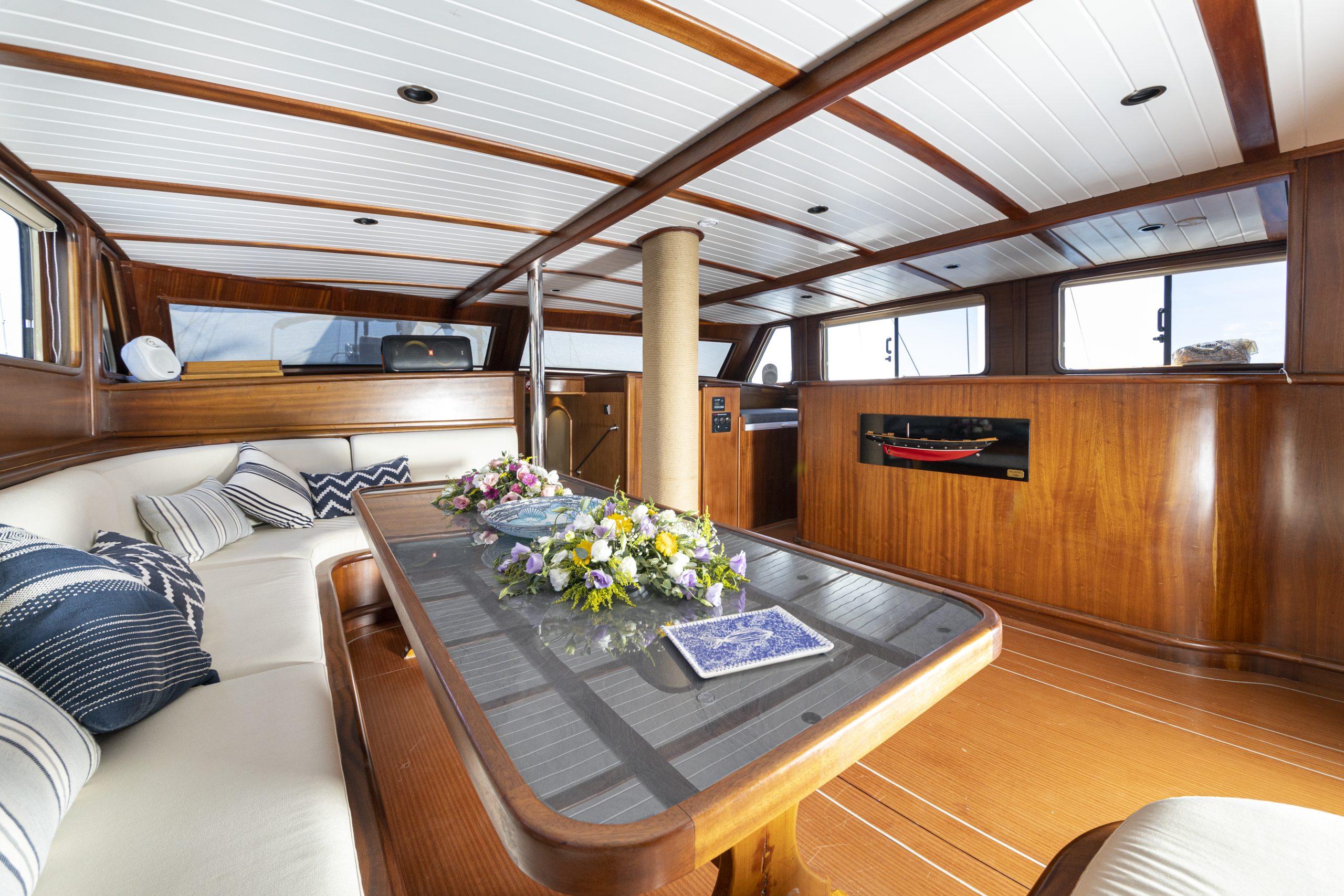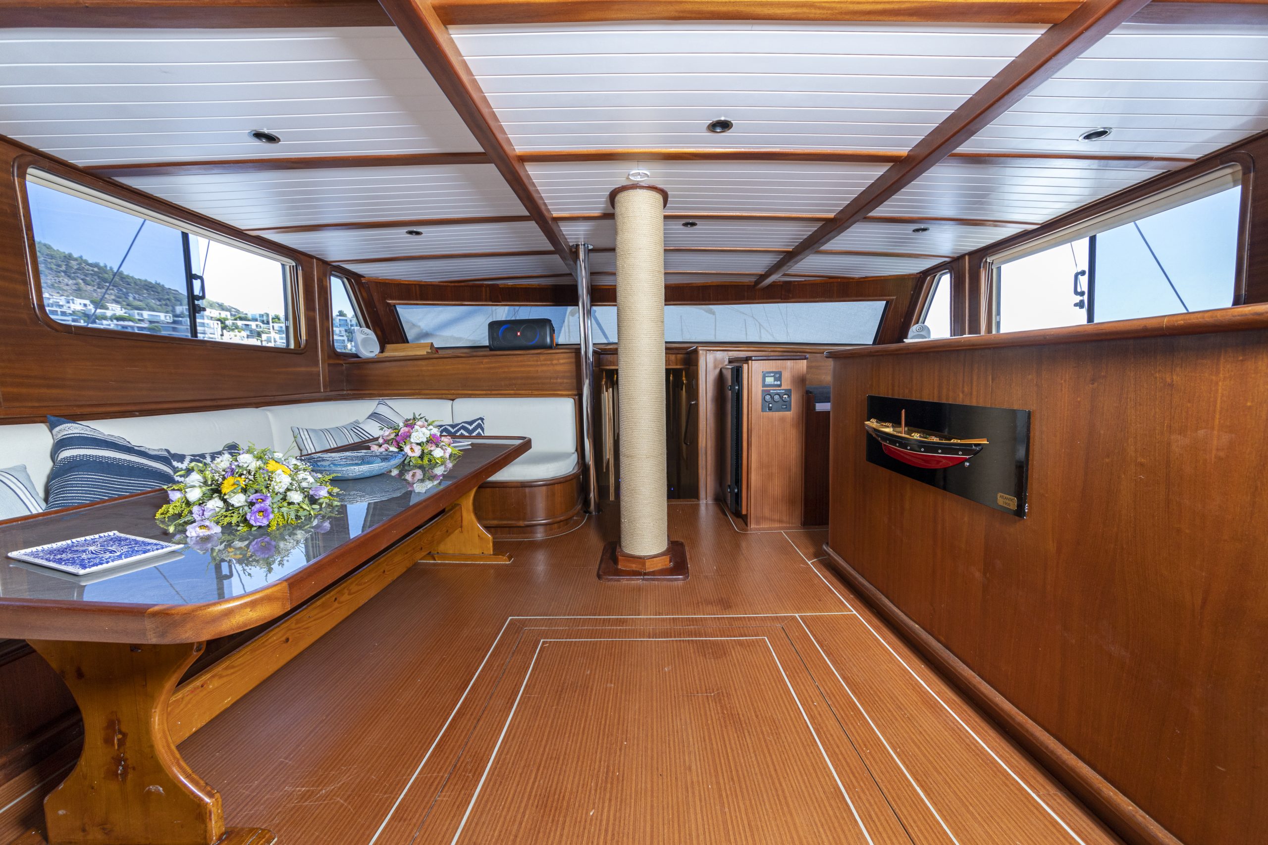 Bodrum Queen was built in 1999 . After a renovation in 2020 It took its final form that you can all enjoy today. Our gulet holds 2 Master Cabins, 4 Double Cabins , more elegantant comfy than each other with their own WC and air conditioning, with a total of 6 cabins.